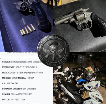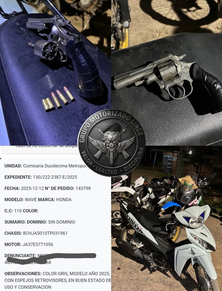El Grupo Motorizado LINCE logró capturar a un hombre armado y recuperar una motocicleta con pedido de secuestro por robo a mano armada, durante un operativo preventivo en el barrio Villa Río Negro.