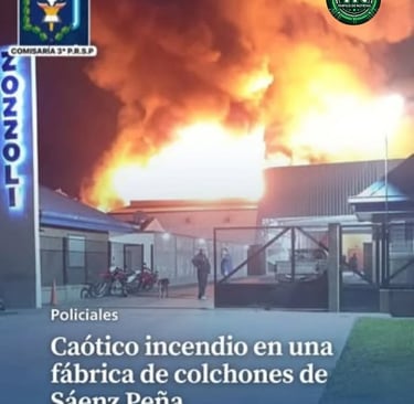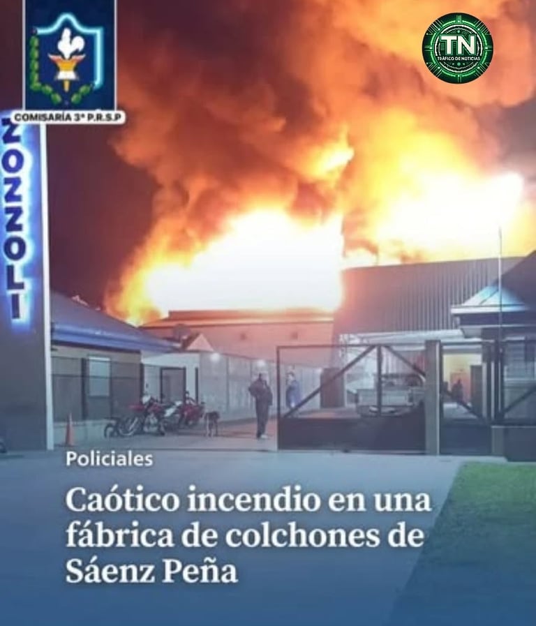 Este miércoles por la madrugada, se incendió una fábrica de colchones ubicada sobre la colectora de la ruta 95, entre calles 1 y 9, en Sáenz Peña.