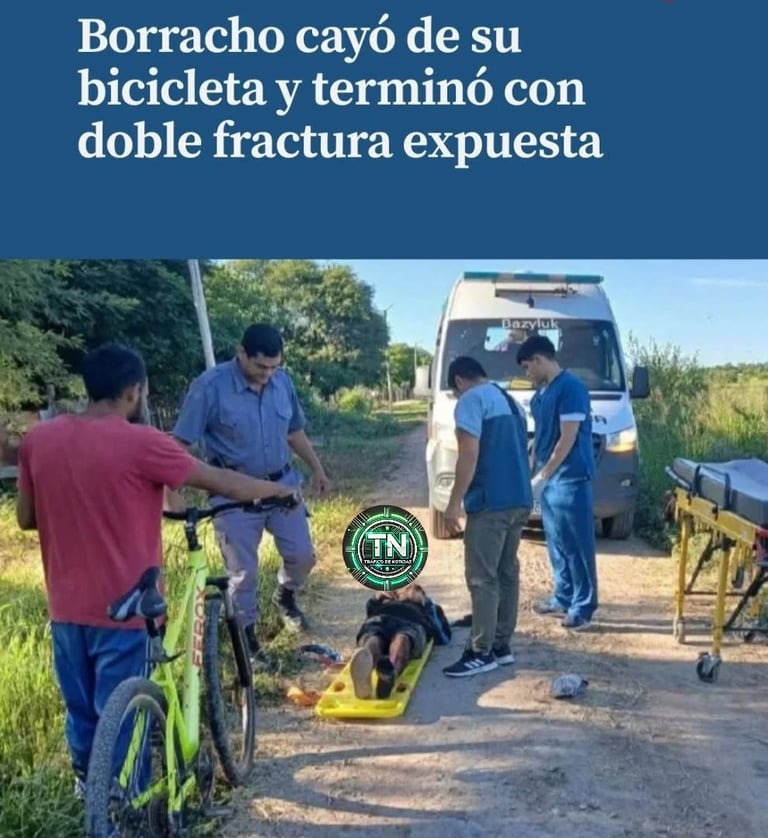 Tras ser auxiliado, contó que se encontraba en estado de ebriedad, perdió el equilibrio y cayó de su bicicleta, lo que le produjo una fractura expuesta de la tibia y el peroné en su pierna izquierda.