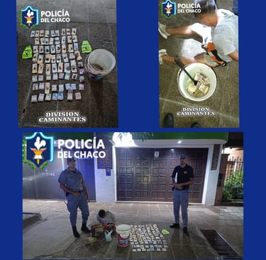 El procedimiento se realizó cerca de las 00:15, cuando los efectivos lo interceptaron mientras circulaba de manera sospechosa transportando un balde de 20 litros.