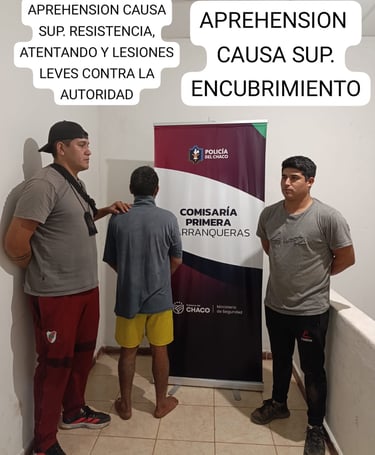 Durante la detención, familiares del joven intervinieron violentamente para evitar el arresto, generando un enfrentamiento. El personal policial debió emplear la fuerza mínima necesaria, resultando escoriaciones leves tanto en el detenido como en los agentes.