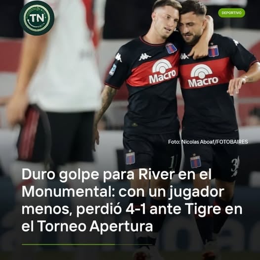 River sufrió una dura derrota este sábado por la noche en el estadio Monumental al perder 4 a 1 frente a Tigre, en el marco de una nueva fecha del Torneo Apertura. El equipo dirigido por Martín Demichelis tuvo una actuación floja y terminó condicionado por la expulsión de Leandro González Pírez Vera, que lo dejó con diez jugadores en un momento clave del partido.