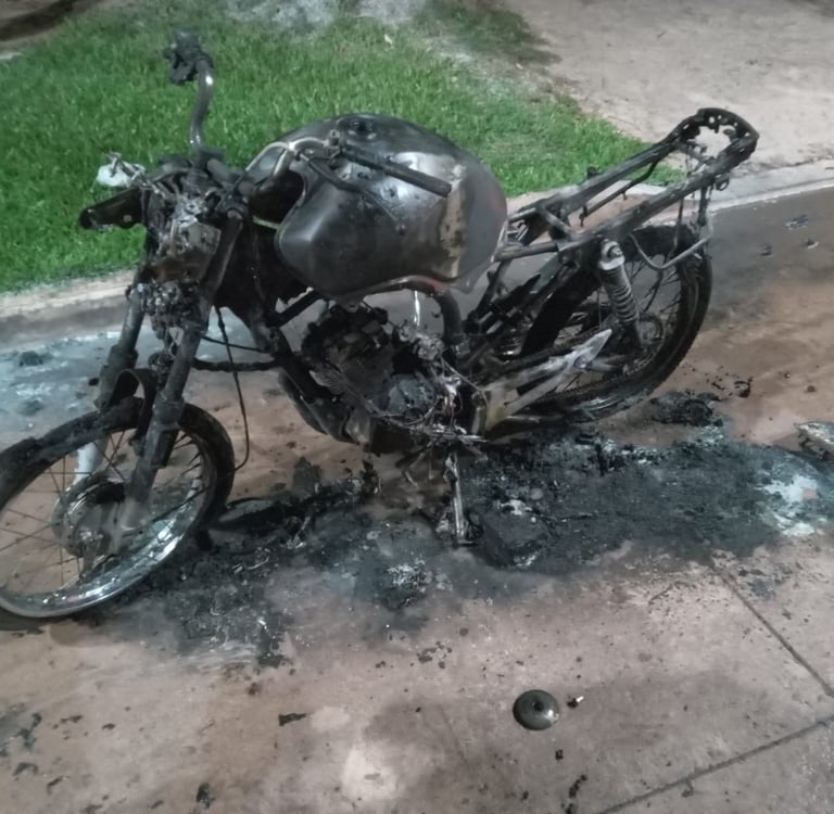 Un grave episodio ocurrió durante la madrugada en la ciudad de General San Martín, donde una motocicleta fue prendida fuego de manera intencional en plena vía pública.