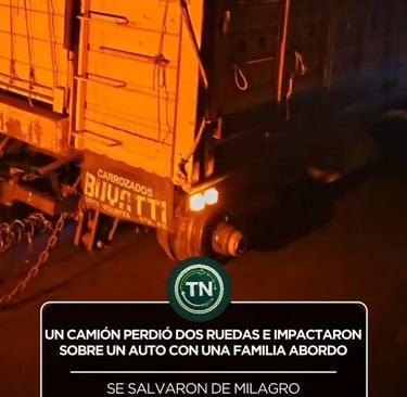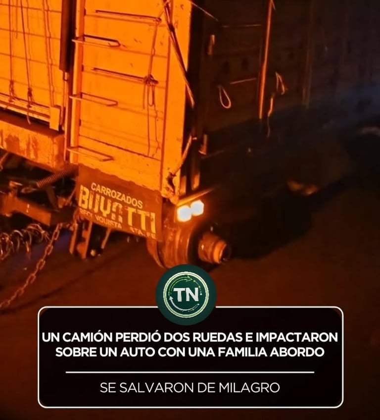 Un camión Iveco con acoplado perdió dos ruedas en plena marcha. Minutos después, un automóvil Fiat, en el que viajaba una familia, no logró esquivar los neumáticos que habían quedado sobre la calzada e impactó contra ellos.