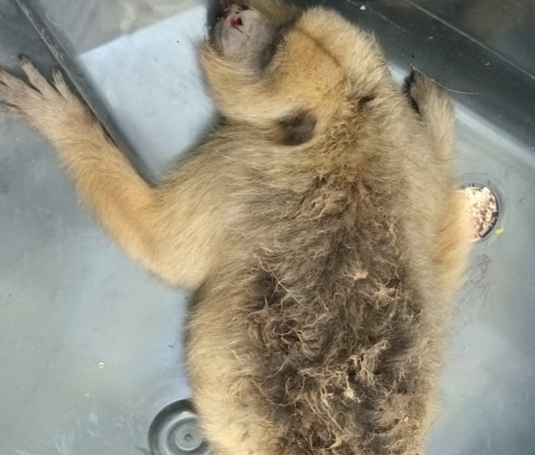 Finalmente, el mono fue trasladado en un móvil por efectivos del Departamento Rural hasta un veterinario que colabora con el B.O.A., donde recibió las primeras curaciones y quedó bajo resguardo.