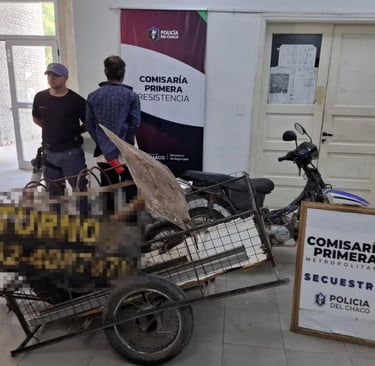 También incautaron una motocicleta Gilera Smash 110cc, un carro de un eje con dos ruedas y varias estructuras y fragmentos de hierro y chapa que estarían vinculados al hecho.