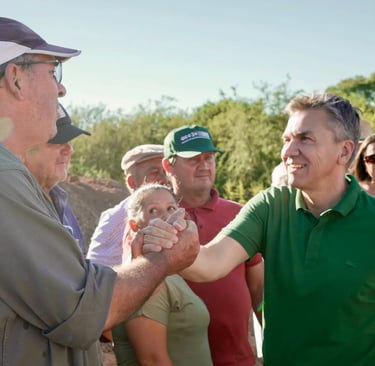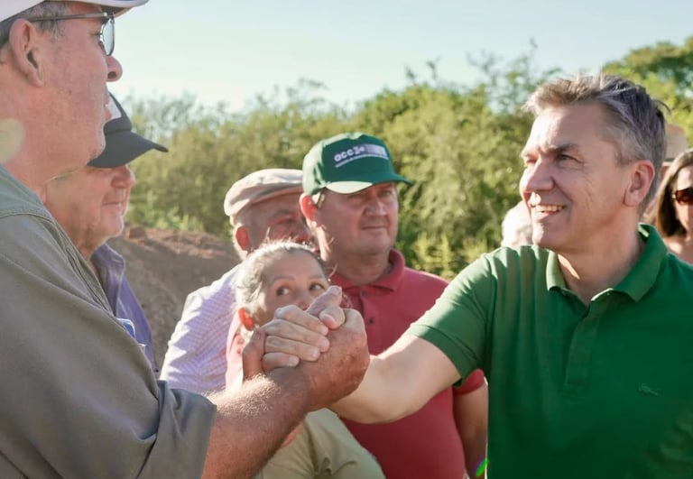 El gobernador del Chaco, Leandro Zdero, junto al ministro de Producción, Oscar Dudik, constató el avance de obras de represas comunitarias en la zona rural de Villa Berthet, destinadas a mejorar el acceso al agua para el sector productivo.