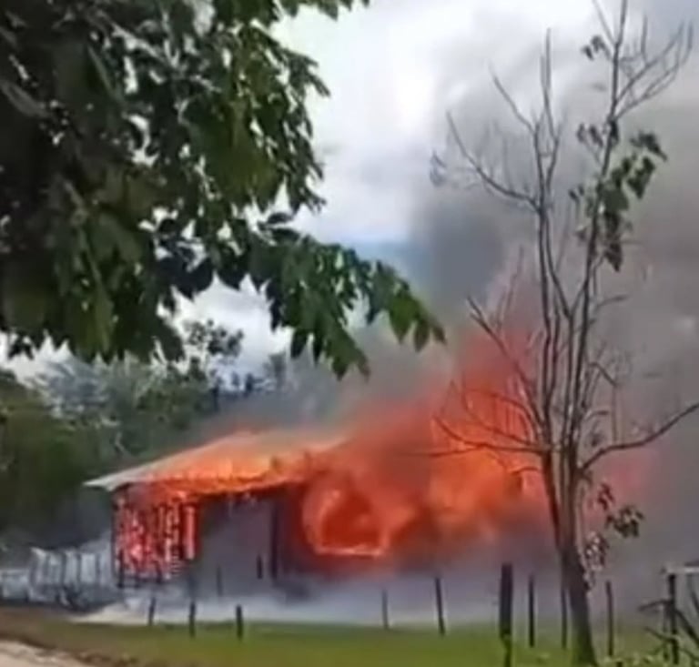 Un domingo dramático se vivió en el paraje Rincón Santa María, donde una casa quedó completamente destruida tras ser devorada por las llamas en cuestión de minutos.