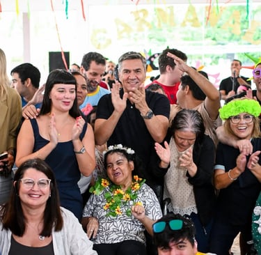 El gobernador Leandro Zdero, junto a la presidenta del IPRODICH, Ana Mitoire, participó de la “Fiesta de Carnaval” organizada en el Instituto de Atención y Desarrollo (IAD), en Resistencia, destinada a personas con discapacidad.